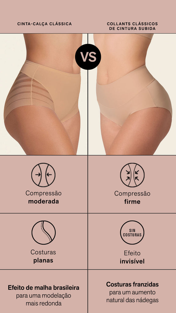 Se precisar de maior compressão e modelagem, recomendamos optar pela calcinha redutora. Estas peças são confeccionadas com materiais mais resistentes e possuem painéis reforçados em áreas chave para lhe dar maior sustentação e definição.