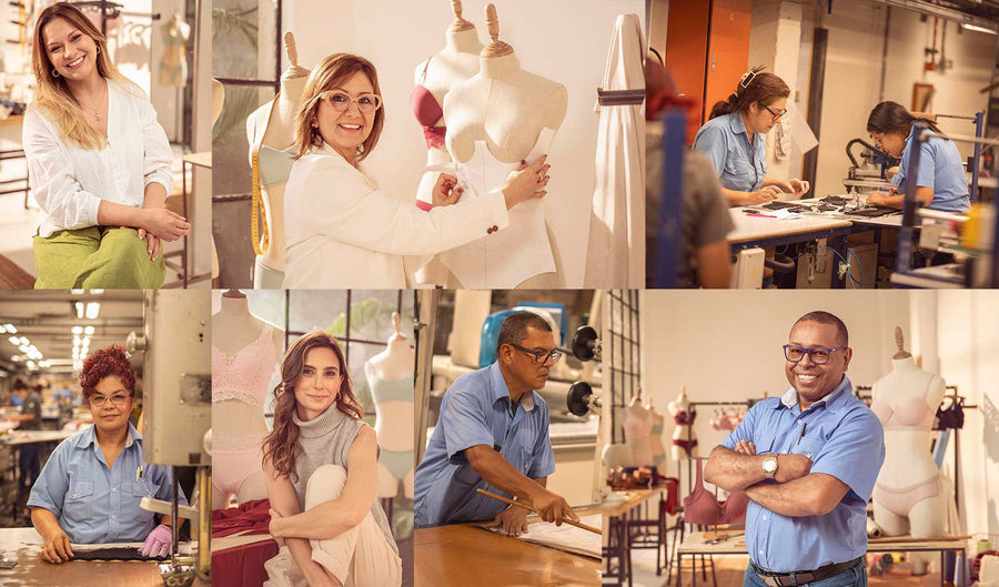 Todas as nossas peças de vestuário são criadas nas nossas 40 fábricas na Colômbia, sob boas práticas laborais. Pagamos salários justos, fornecemos seguro de saúde e oferecemos alimentação diária a todos os trabalhadores das nossas fábricas.